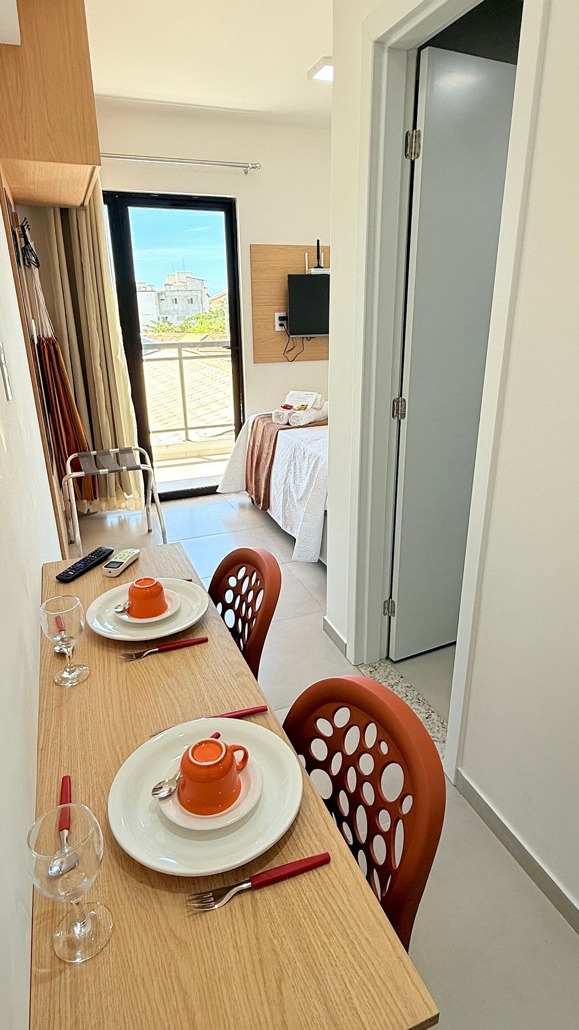 El espacio fue pensado para ofrecer el máximo confort en un formato compacto: una acogedora cama matrimonial, aire acondicionado, TV y ropa de cama de calidad hotelera. El balcón, bañado por luz natural, es una invitación a relajarse, leer un libro o simplemente disfrutar del agradable clima de Stella Maris / Salvador.